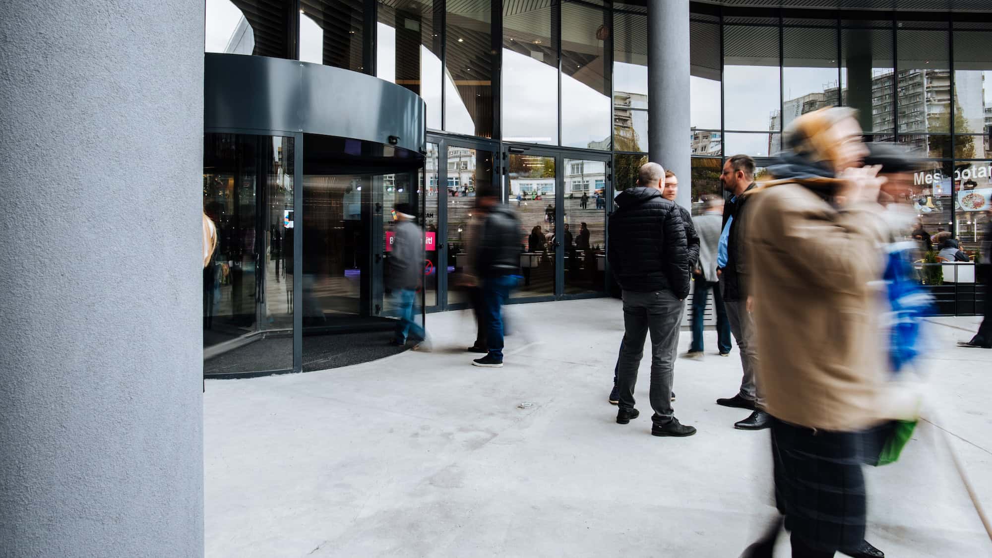 The modern design of these doors integrates perfectly into the building’s architecture, offering visitors an elegant and comfortable welcome.